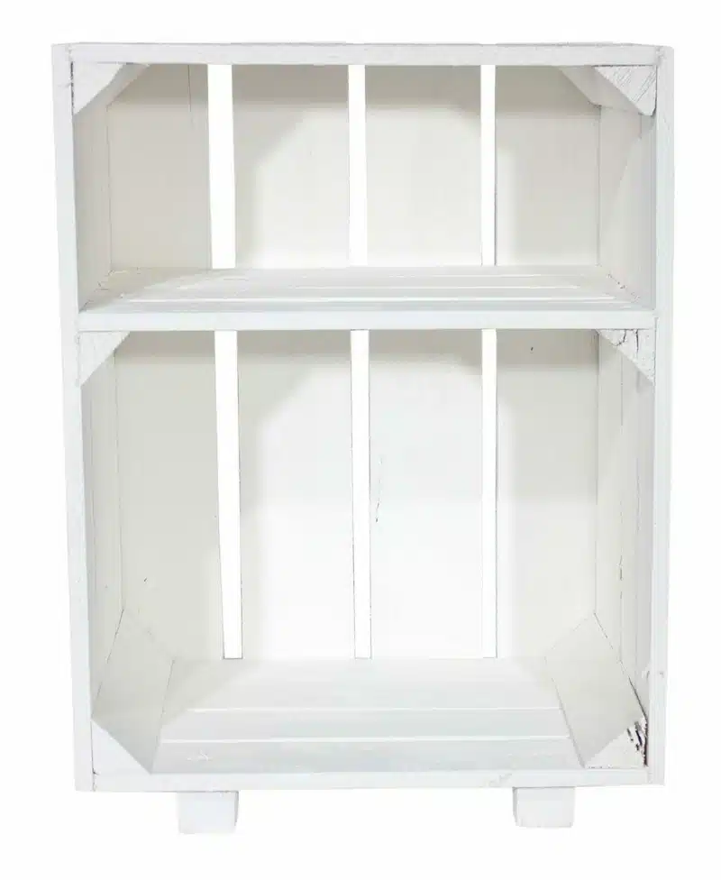 Einst eine Apfelkiste und heute ein Traum in Weiß der auch schon bald in deinem Schlafzimmer stehen kann. Dieser Nachttisch mit Boden aus der Chabby Chic Serie besitzt die Maße von 30,5 cm x 40 cm x 54 cm und bietet somit reichlich Platz für die verschiedensten Dinge. Selbstverständlich eignet sich diese Regalkiste nicht nur als Nachttisch, sondern kann praktisch überall als Regal aufgestellt werden.